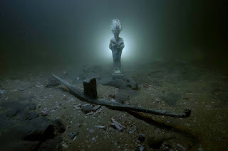Top image: Sunken ships, statues and treasure have been found under water at in bay near Alexandria. (Image: Egyptian Ministry of Antiquities)