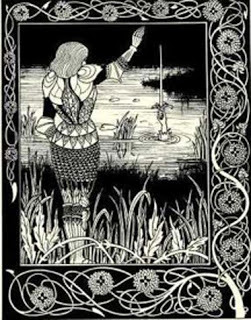 How Sir Bedivere Cast the Sword Excalibur into the Water. Aubrey Beardsley Illustration from: Sir Thomas Malory, Le Morte d'Arthur. London: Dent, 1894 (Public Domain)