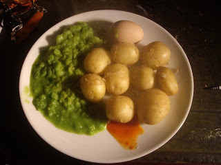 5) You can eat mushy peas with anything. Here, the Wizard displayed remarkable flexibility in serving the peas with boiled new potatoes in the skin, a par-boiled free range egg and a pepper sauce jus. Sausages are totally made for mushy peas and a famous dish to try around the Thanksgiving bonfire is a pot of mushy peas with a dash of mint sauce. Scrumptious!