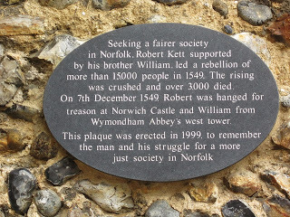 1549 Kett's Rebellion was a revolt in Norfolk, England during the reign of Edward VI. The rebellion was in response to the enclosure of land. It began in July 1549 but was eventually crushed by forces loyal to the English crown when the Earl of Warwick attacked and entered Norwich on August 25.