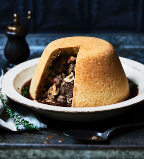 Serve straight from the bowl or turn it out and cut it into segments. The butter crust makes this easier to do than the traditional suet one.