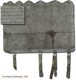 1328 Wars of Scottish Independence end: Treaty of Edinburgh-Northampton - the Kingdom of England recognized the Kingdom of Scotland as an independent state.