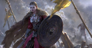 Then the high-born lady saw them play the wounding game, she resolved on a hard course and flung off her cloak; she took a naked sword and fought for her kinsmen's lives, she was handy at fighting, wherever she aimed her blows.” - ‘The Greenlandic Poem of Atli’ (st. 49) (Larrington, 1996)