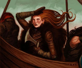 Artistic representation of a Viking Age warrior woman on a ship. (Women in History)