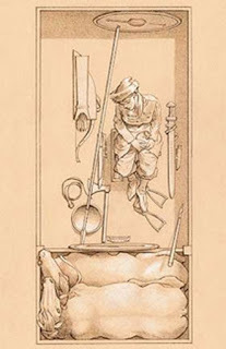 But soon he breaks a taboo of standing on a broad flat stone, from where he is able to view the Ireland he left behind. It has changed for the worse, and he begs Niamh to give him leave to return. She reluctantly agrees, but asks that he return after only one day with the mortals. She supplies him with a black horse, which he is not to dismount, and ‘gifted him with wisdom and knowledge far surpassing that of men.’ Once back in Ireland he realizes that decades have passed and that he is no longer recognized or known of. Inevitably, he dismounts his horse and immediately his youth is gone and he becomes an enfeebled old man with nothing but his immortal wisdom. There is no returning to the faerieland of the Tir na n’Og. In other variations of the story, the hero turns to dust as soon as his feet touch the ground of consensus reality.