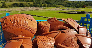 Top image: Samian ware pottery that was found at the site at the end of last month (The Vindolanda Trust)