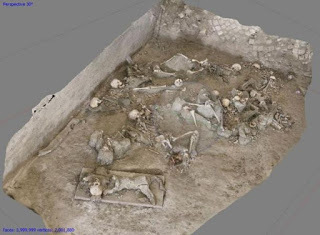 Photomodel of skeletons in situ, Room 10, Oplontis B (Torre Annunziata, Italy). (Credit: N.Terrenato and M. Naglak, University of Michigan)