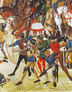 It was in the Hundred Years War that the longbow came into its own. At the battle of Crecy, English archers were instrumental in defeating a much larger and better equipped French force. At the time warfare had been dominated by the power of the knight, clad in expensive armour and riding an even more expensive war horse. Battles were fought on the principles of chivalry with captured knights being treated with all due respect and returned on receipt of a ransom.