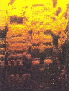 Side sonar scan off the coast of Bimini at 130 feet under the water. This color image reveals the staircases, doors, and the roof of a pyramid complex. (Image provided by William Donato and ARE)