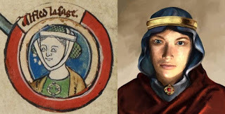 Top Image: Medieval miniature of Æthelflæd in Genealogical roll of the kings of England. 14th century (Public Domain) What Aethelflad may have looked like. (History's HEROES?)