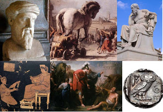 Top Image: Bust of Pythagoras. (CC BY SA 3.0), ‘The Procession of the Trojan Horse in Troy.’ (Public Domain), Statue of Socrates – warrior turned philosopher. (C Messier/CC BY SA 4.0), Demeter, enthroned and extending her hand in a benediction toward the kneeling Metaneira (Public Domain), The meeting between Alexander and Diogenes (Public Domain), and Tetradrachm. ΑΘΕ, owl standing right; olive-sprig and crescent above. (Classical Numismatic Group, Inc./CC BY SA 3.0)