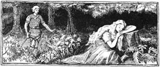 Sif sleeps while Loki lurks behind in an illustration (1894) by A. Chase. (Public Domain)