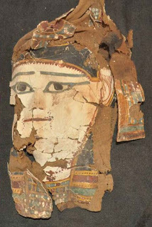 A painted mummy mask found as part of one of the funerary collections. ( Ahram Online )
