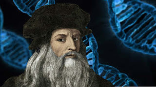 Top Image: A representation of Leonardo da Vinci. (Deriv.) (CC BY SA) Background: Structure of DNA. (Public Domain Pictures)