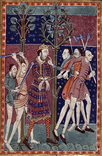 St Edmund is captured by Danes in a c1130 illumination. His death in 869 would go down in infamy yet, despite this, Vikings and Anglo-Saxons would learn to co-operate. (© Topfoto)