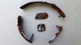 Top image: A buckle and part of a strap were found with the metal pieces. Credit: Border Archaeology