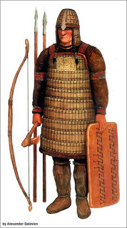 Gusev said the armor resembled the warrior picture here, which relates to designs used by the Kualai people, hunters and fishermen native to the taiga.