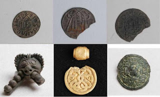 Coins ( Pernille Rohde Sloth ) and Viking jewelry ( Kamilla Fiedler Terkildsen ) discovered at the site of the Viking Age tower in Jutland, Denmark.