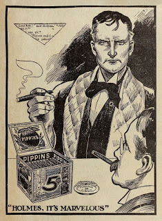 3) Holmes, having survived the Reichenbach Falls, refused to die with his creator. By the time of Conan Doyle’s death [7 July 1930], Holmes was already a star of stage and screen. His film debut, Sherlock Holmes Baffled, came as early as 1900. Just a few seconds long, the film used stop-motion camerawork to show Holmes attempting to grapple with a burglar who repeatedly disappears, then reappears in a different part of the room.