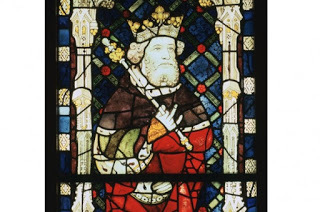 A 15th-century stained glass window from Canterbury Cathedral, depicting King Cnut. (CM Dixon/Print Collector/Getty Images)