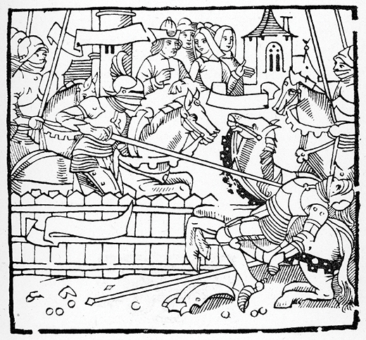 A medieval woodcut shows men jousting, a highly perilous pastime at which William Marshal excelled. © Alamy