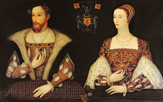 The couple wore matching outfits of white damask for their glittering marriage at Holyrood Abbey. James spent extravagantly on preparing accommodation for his queen and on the wedding festivities: a quarter of his annual income went on wine alone. And he shaved his beard after the wedding, at his wife’s behest.