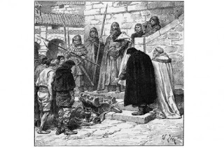 Svein, now king of England and Denmark, ruled from Christmas to Candlemas, but died suddenly on 3 February 1014. The Danish fleet chose Cnut to succeed him, but the English nobles had other ideas: they contacted Æthelred, still in refuge in Normandy, and invited him to come back as king. They said, the Anglo-Saxon Chronicle tells us, “that no lord could be dearer to them than their natural lord, if he would govern more justly than he had done before”. In response, Æthelred promised to be a better king, to forgive those who had deserted him, and to “remedy all the things of which they disapproved”. On these terms the agreement was made, and Æthelred returned to England. This time he managed to drive out Cnut, and the fleet went back to Denmark.