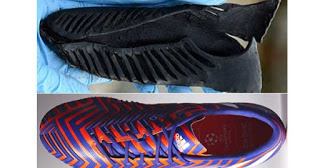 Top image: Top: An ancient shoe recently discovered in a Roman fort. Credit: North News & Pictures LTD. Below: Adidas Predator.