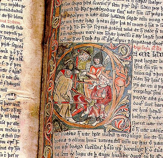 This marginal illumination from the Saga of Saint Olaf shows his death at the battle of Stiklestad in 1030. (Photo by Werner Forman/Universal Images Group/Getty Images)