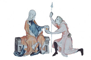 Illustration from the 1370s showing a messenger delivering a letter. (Bridgeman Art Library)
