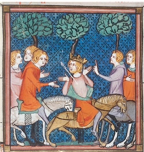 Henry I receives French envoys near Gisors, north of Paris, in this illumination from the ‘Chronique de St Denis’, c1335–40. The king spent much of his income on war on the continent. (AKG)