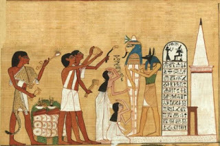 A c1285 BC Book of the Dead illustration shows a mummy being prepared for burial while his family lament. (The trustees of the British Museum)