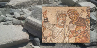 According to NationalGeographic.com, archaeologists have discovered an interesting and unusual mosaic at the Huqoq archaeological site west of the Sea of Galilee. The most recent and most interesting find dates from the 5th century, and shows a king in military attire and a troop of soldiers, offering a calf to a group of white-robed priests. But the meeting is obviously fractious, as the priests are drawing their swords, while the bottom of the scene shows the solders lying defeated and dying.