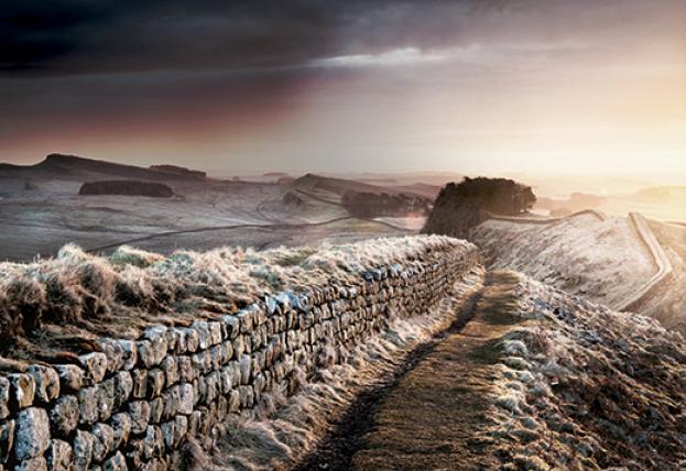 Hadrian’s Wall dissects the countryside of northern England. By AD 130, the wall’s turf sections were being rebuilt in stone and many adaptations being carried out, a sure sign that trouble was afoot. © Corbis
