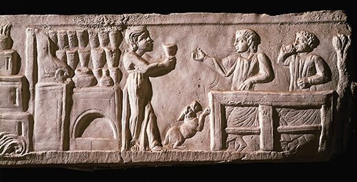 The patrons of a tavern enjoy a drink in this second-century AD relief. © Getty