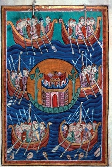 Viking ships arriving in Britain, c1130. Found in the collection of Pierpont Morgan Library. Artist: Abbo of Fleury. (Photo by Fine Art Images/Heritage Images/Getty Images)