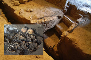 )The research team is not sure what kind of business operated in the shop. It features a circular well that is accessed by a spiral staircase and a furnace. One theory is that it may have been used to make bronze objects.