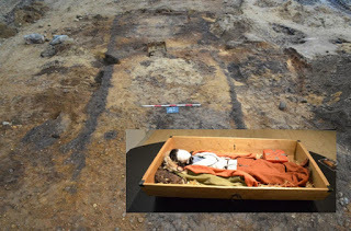 ''The partial skeleton of a young woman was discovered in 1938 at Ketilsstaðir, in eastern Iceland. She lived in the 9th or 10th century AD and was found with typical copper-alloy Scandinavian oval brooches, one of which was in direct contact with her face, resulting in significant soft tissue and textile preservation. The skeleton was very poorly preserved and incomplete, but after many decades, a team led by Jakob and Joe Walser III of the University of Iceland in Reykjavik, decided to re-examine it…Top image: Main: Outline of the 1000-year-old tomb. Inset: reconstruction shows how the woman may have looked in Viking times (Photo: Museum Silkeborg)