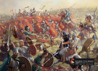 451 Battle of Chalons: Flavius Aetius' defeated Attila the Hun at Catalarinische Fields. Theodorid, King of the Visigoths was mortally wounded in this battle.