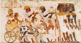 Top image: Nubians bringing tribute to the Pharaoh, from the tomb of Huy. Photo Source: (Exploring Africa)