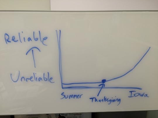 But what if campaigns are not merely hard to predict but are actually a little random? Or perhaps even a lot random? Change one small thing just slightly — a debate moderator allows a follow-up response instead of nixing one; a candidate gets food poisoning on the eve of an important primary — and the outcome winds up being not just a little bit different but potentially way different.