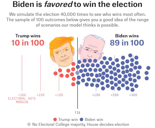 Now, there are also some sources of error that weren’t as relevant four years ago. The big surge in early and mail voting — around 100 million people have already voted! — could present challenges to pollsters, for instance. Still, even making what we think are fairly conservative assumptions, our final forecast has Biden with an 89 percent chance of winning the Electoral College, as compared to a 10 percent chance for Trump. (The remaining 1 percent reflects rounding error, plus the chance of an Electoral College tie.)