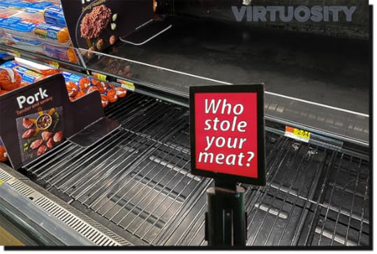 We pull all the meat from supermarket shelves. Then we put signs on the empty shelves that ask: “Who stole your meat?”