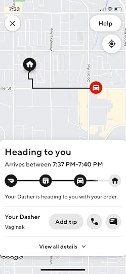 Settle a debateThe other night, we ordered shawarma from a nearby Middle Eastern restaurant. Christina placed the order via Door Dash. When the app notified her that our driver was on the way, Christina lost her shit.