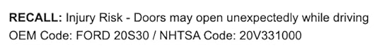 Do you know anyone who drives a Ford Fiesta? If so, would you please warn them that their doors may open unexpectedly while driving?