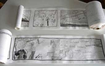 Rudy Rucker writes to let us know that this Thursday, his daughter Isabel will debut "Unfurling," a 400 foot long graphic novel drawn on a scroll of paper, at the SOMArts gallery in San Francisco. It'll be on display through the 27th.