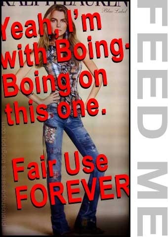 Fair use has been under steady attack from legal weasels long enough. A flamboyant gesture or two may be what it takes to finally hit the nightly news and embarrass the hell out of these jerks. Shame is a powerful...