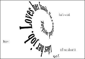 Can there be comics without pictures? Does manipulated, positioned text like this qualify as pictures on some level? Fun questions to ask once in a while.