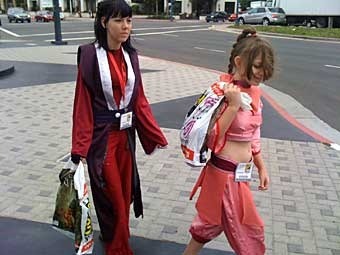Winter and her friend Amanda on their way to cosplaying Tai Lee and Mai from Avatar: The Last Airbender. More pictures here, here and here. (Note: The family and I are big fans of the cartoon, though like others, we're concerned about the lack of Asian actors in the upcoming film.)