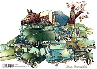 I Want You by Lisa Hanawalt is a 32-page black and white pamphlet with color covers from Buenaventura Press. It's filled with weird, sexually-charged or scatological short subjects. Some are funny, some are disturbing, many are both. It would look at